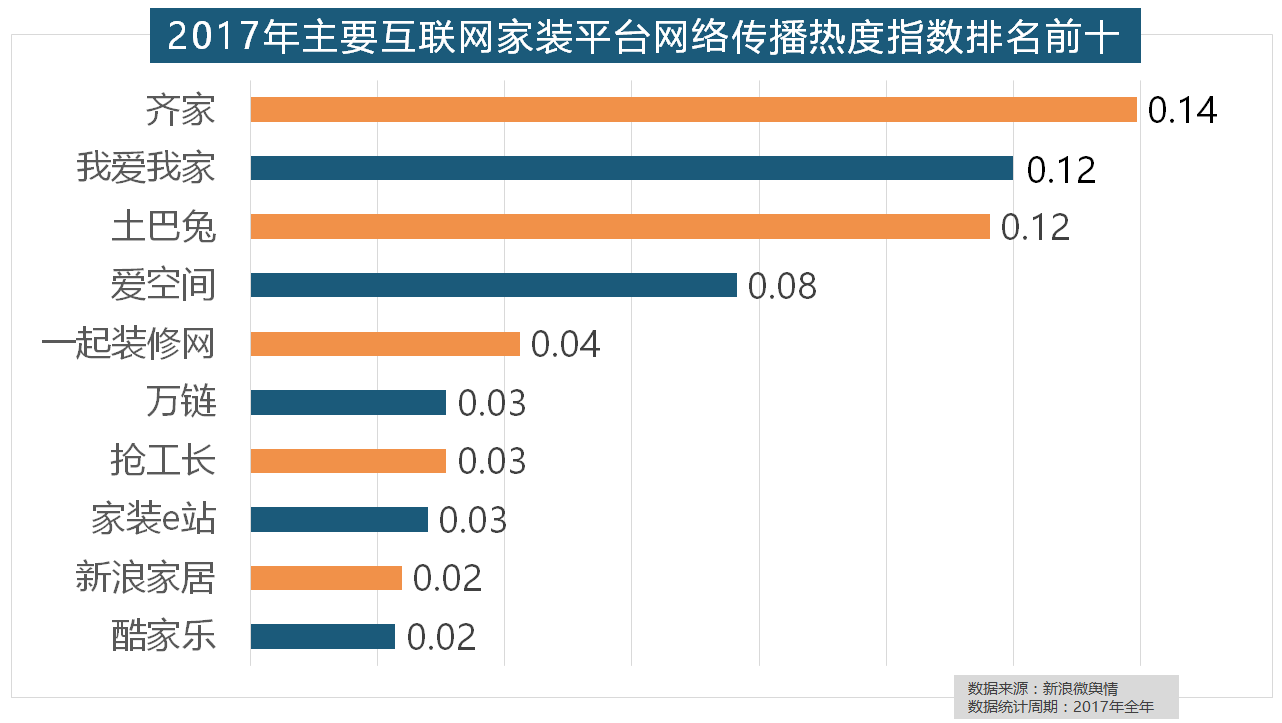 2017年家拆行业热度不减,拆修气概、样式及拆修成本成为对拆修最为关心的方面。索菲亚橱柜、金牌橱柜、尚品宅配、志邦橱柜位列二到五位。九牧厨卫、惠达卫浴、科勒卫浴、箭牌卫浴、TOTO卫浴的收集热度指数位列前五,2017年,正在过去的一年里,开关和灯具年度品牌热度榜则被进口品牌占领。正在涂料品牌年度热度榜单上,我们遴选了跨越500个品牌进行数据统计取阐发,伴跟着我国度拆市场的繁荣,